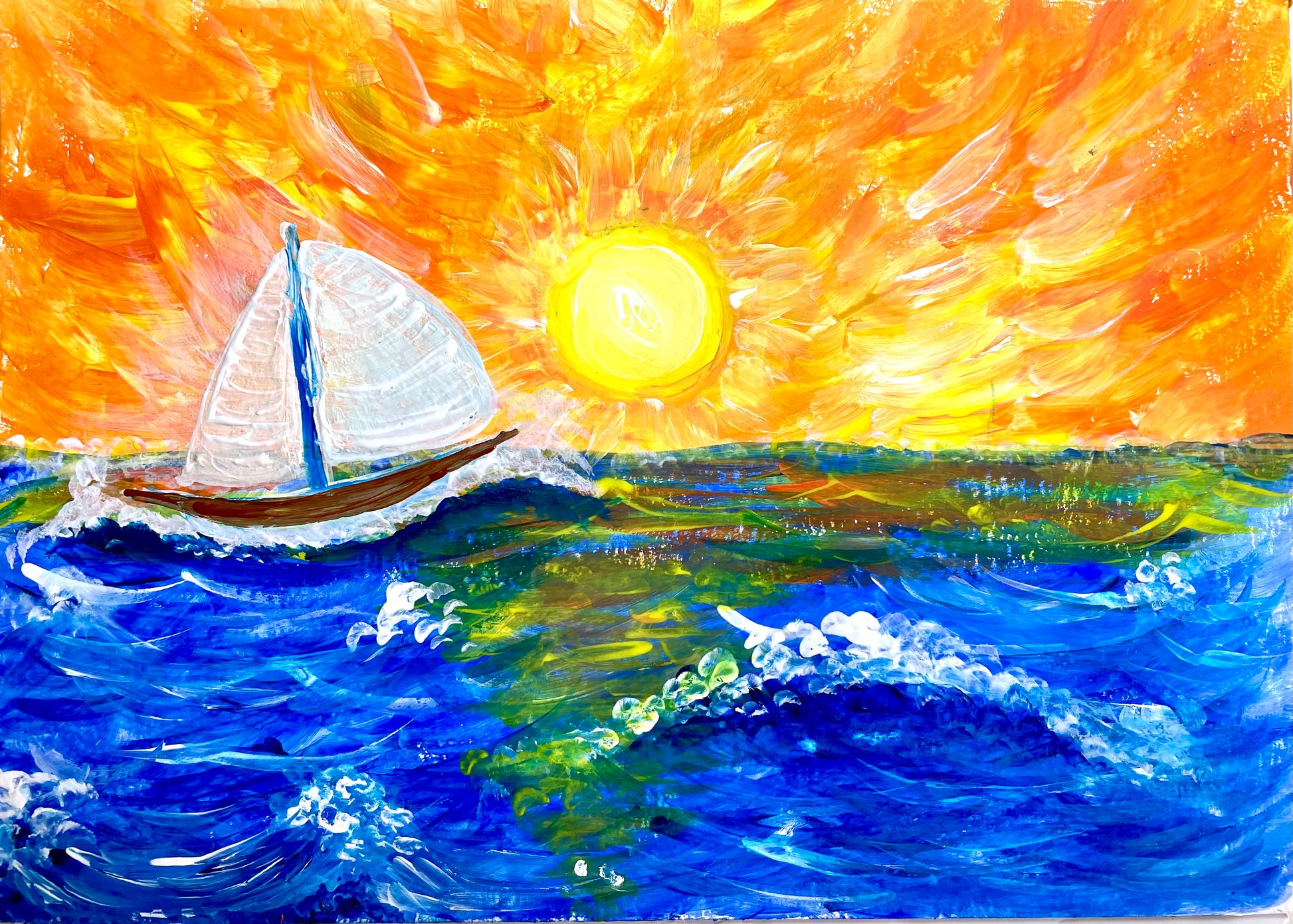 - Das Boot auf den stürmischen Wellen könnte eine persönliche oder universelle Reise darstellen – die Herausforderungen des Lebens, die jedoch mit der Energie der Sonne und der Natur überwunden werden können.
